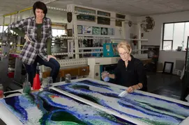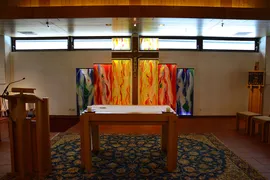 Die Altargestaltung haben Höck Wolfgang - Franziska – Michaela in Zusammenarbeit mit der Glaserei Ehrenstrasser in Kirchbichl gemacht. Die Technik die angewandt wurde ist eine ganz spezielle. Glassplitter in unterschiedlichster Größe und Farbe wird auf ein Glas gelegt, dann kommt eine zweite Glasblatte darauf und das ganze wird 24 Stunden erhitzt. Dann erst wird das endgültige Ergebnis sichtbar.
