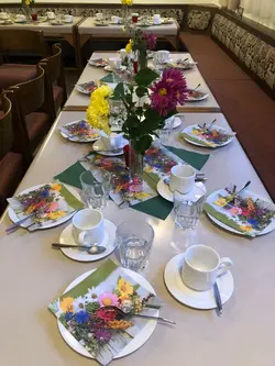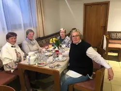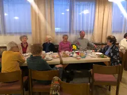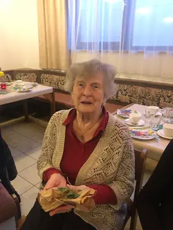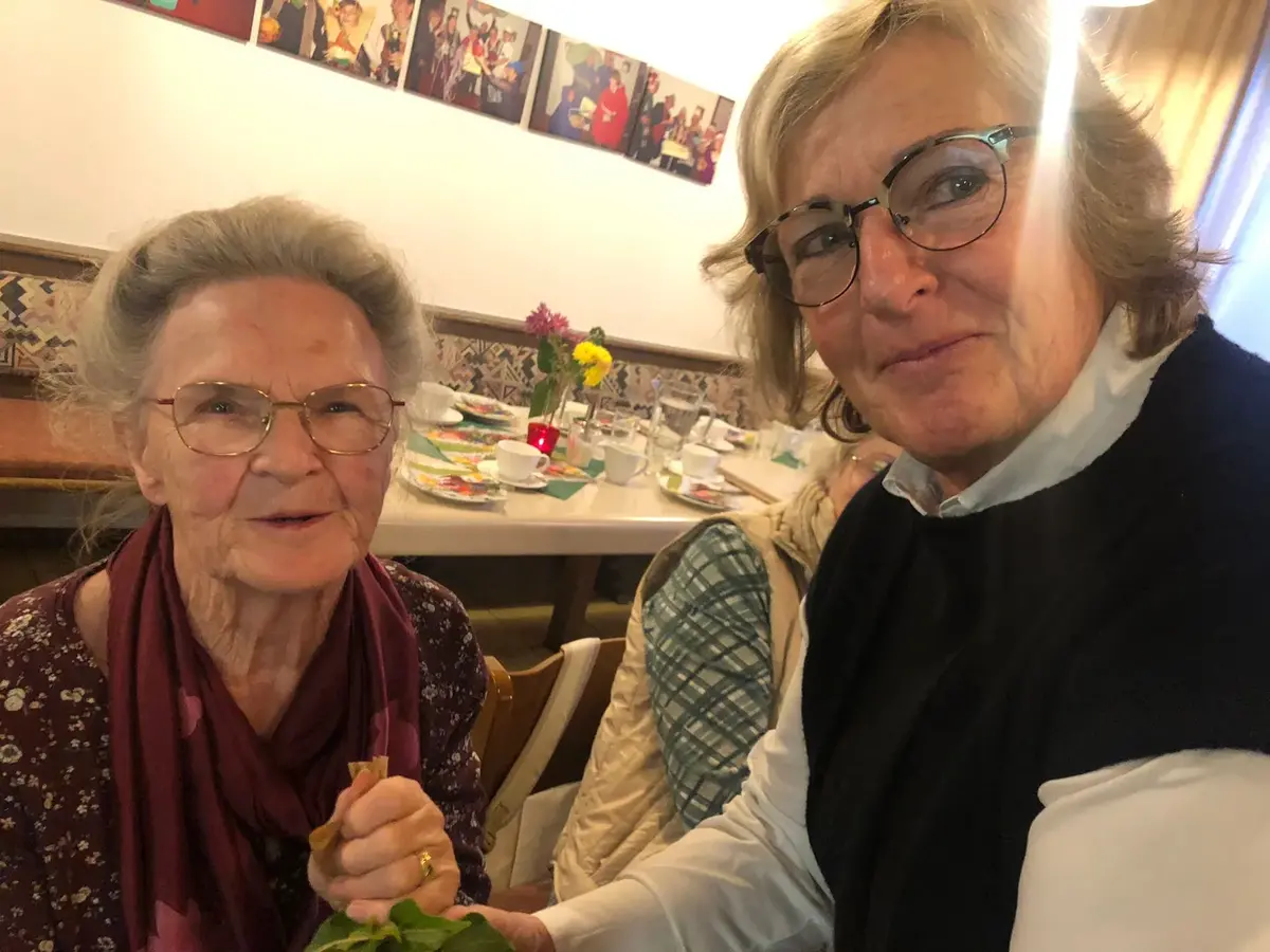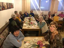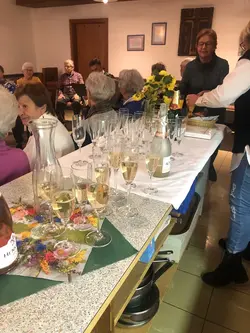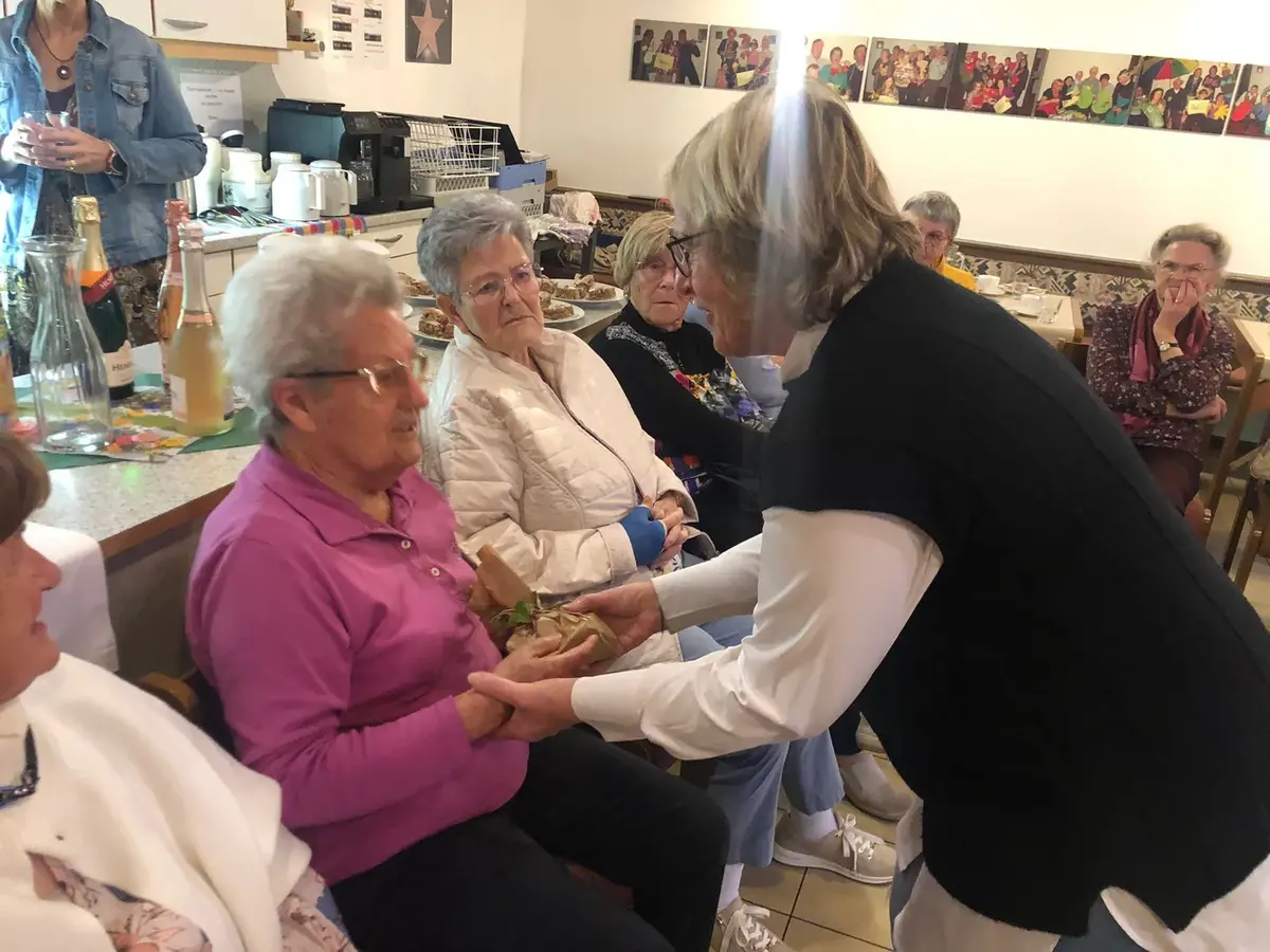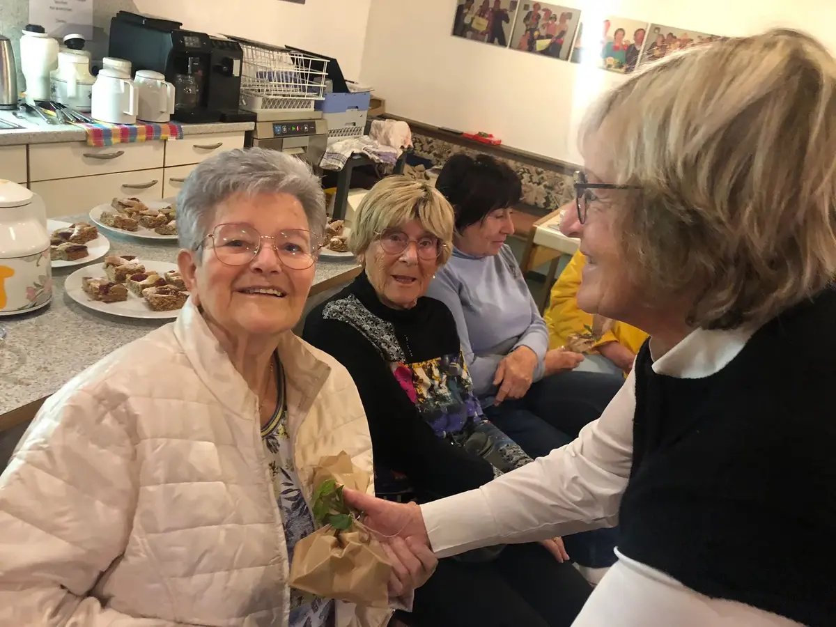 Zwischendurch gab es einen lustigen und auch einen etwas zum Nachdenken anregenden Text und sogar ein Witz, vorgetragen von einer Seniorin aus der Runde, sorgte für beste Stimmung. Natürlich wurde auch mit Sekt auf all die vielen Lebensjahre – weit über 2000!!!!- angestoßen!
