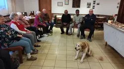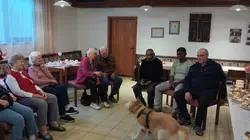Am meisten Aufsehen aber erregte der 4. im Bunde! Amos, der Golden Retriever, von Pfarrer Josef. Er schien sich von Anfang an in unserer Rund wohl zu fühlen. Nachdem er sich ausführlich präsentiert hatte, machte er es sich gemütlich und ließ sich nur ungerne dann zum Aufbruch bewegen.